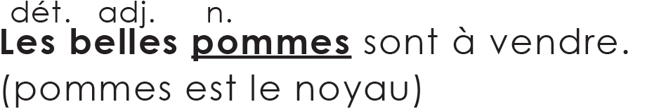 Le groupe du nom (GN) est formé d’un nom seul ou d’un groupe de mots, dont au moins un nom commun ou un nom propre. Le noyau du groupe du nom est un nom.