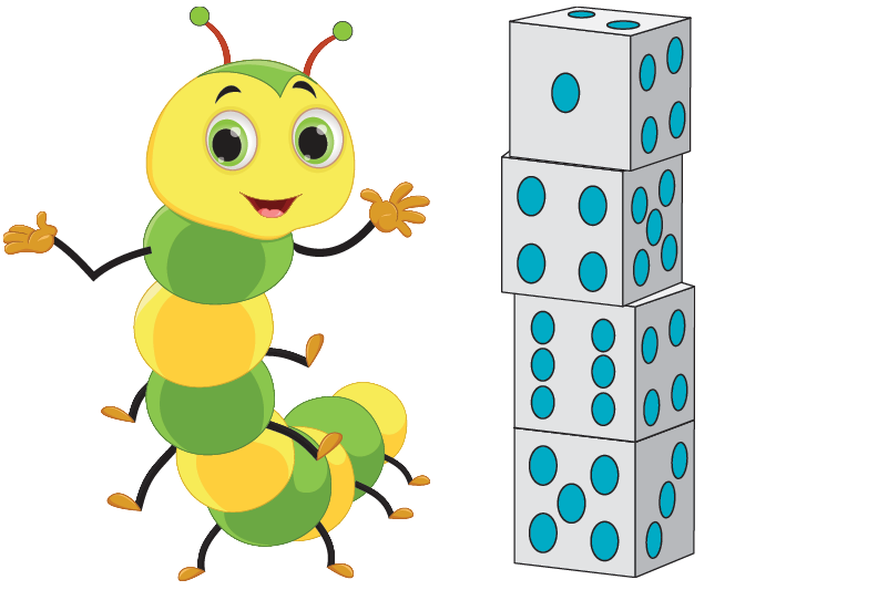 Je peux placer environ 4 dés à côté de cette chenille. Cette bouteille mesure donc environ 4 cm.
