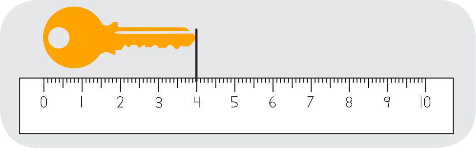 2) On lit le nombre de centimètres et de millimètres qui se trouvent à l’autre bout, à l’autre extrémité de l’objet ou du segment à mesurer.