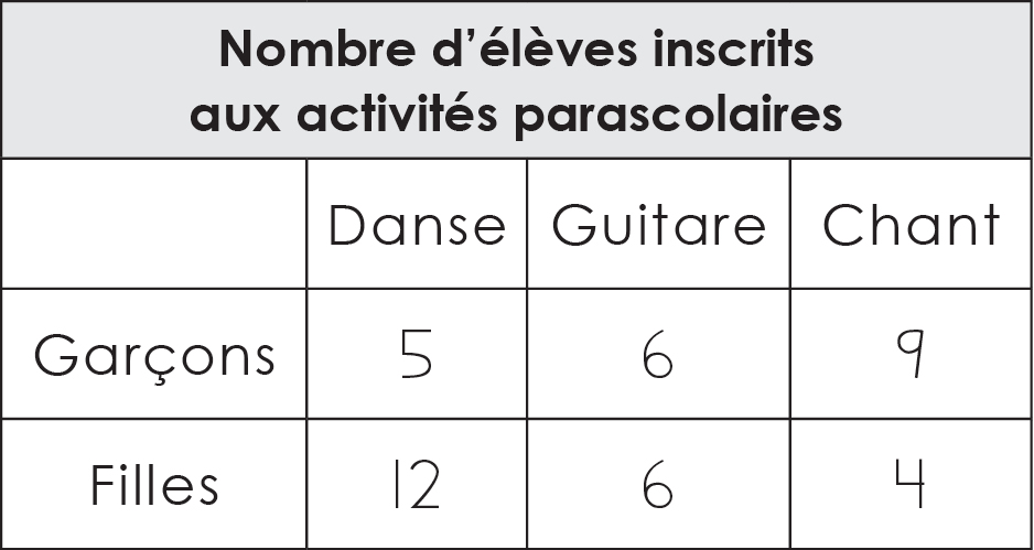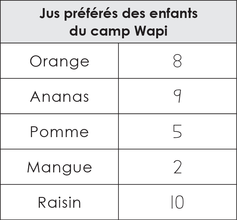 Les tableaux permettent de représenter de façon claire des données ou les résultats d’une enquête. Ces informations sont placées en lignes ou en colonnes.
