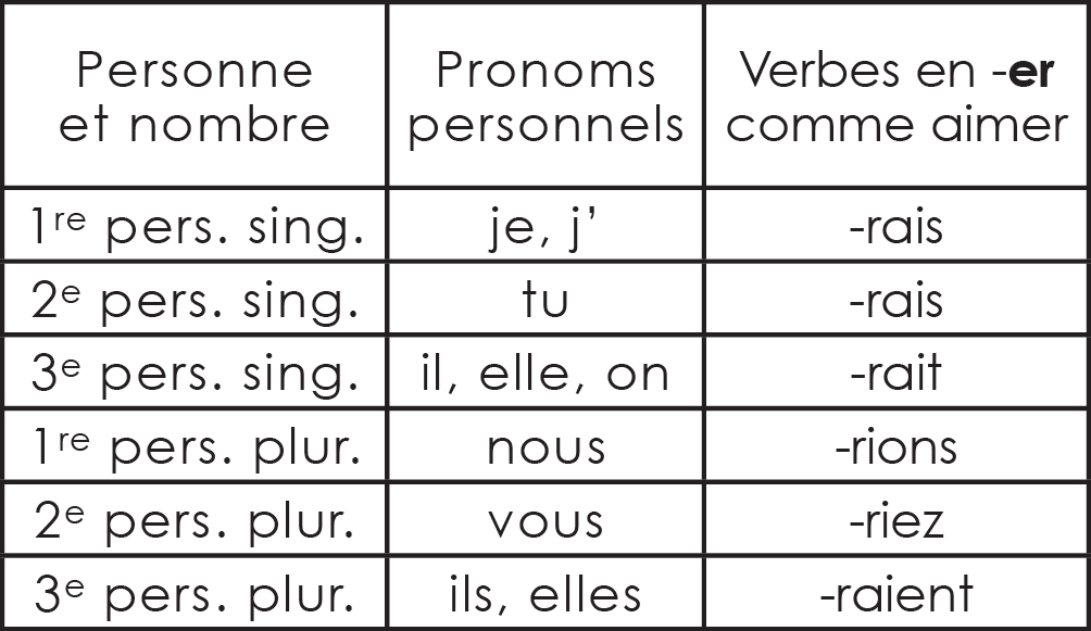 Terminaisons du conditionnel présent des verbes réguliers