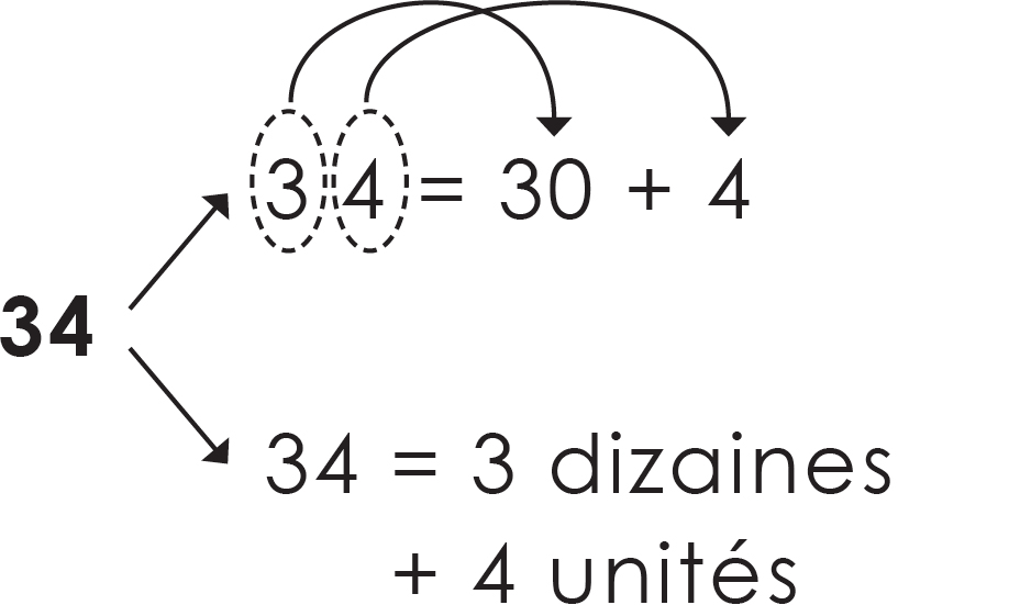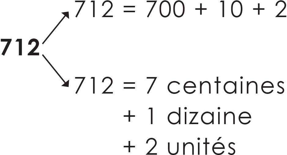 Dans un nombre, la position de chaque chiffre a une valeur bien précise. Lorsqu’on décompose un nombre, on écrit ce que représente chaque chiffre qui le compose : on indique la valeur de chaque chiffre. En d’autres mots, on sépare les unités, les dizaines, les centaines, les unités de mille et ainsi de suite.