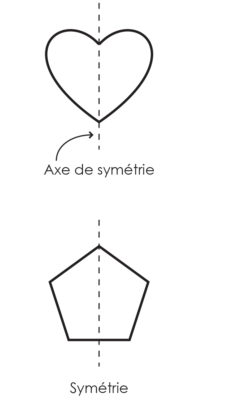 L’axe de symétrie est une droite qui sépare ou qui coupe une figure en deux parties égales. Ainsi, lorsqu’on replie sur elles-mêmes les deux parties, elles sont identiques et se superposent. L’axe de symétrie est souvent représenté par une ligne pointillée ou pleine.