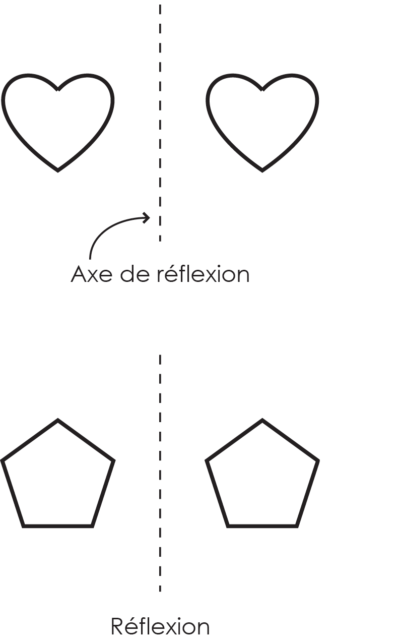 L’axe de réflexion est une droite qui permet la réflexion d’une figure entière. Ainsi, après avoir fait la réflexion, on obtient deux figures. L’axe de réflexion est souvent représenté par une ligne pointillée ou pleine.