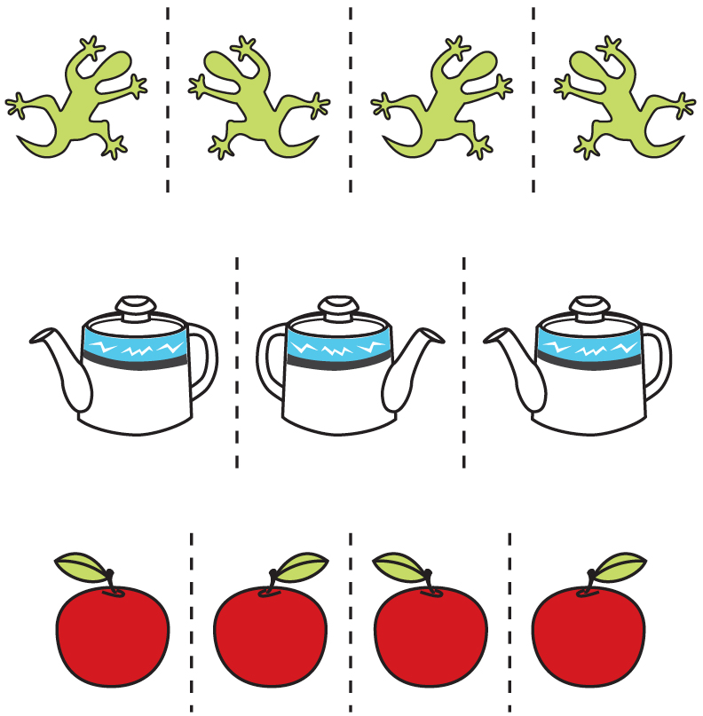 Voici trois exemples de frises. Observe bien à quel endroit se trouve l’axe de réflexion.