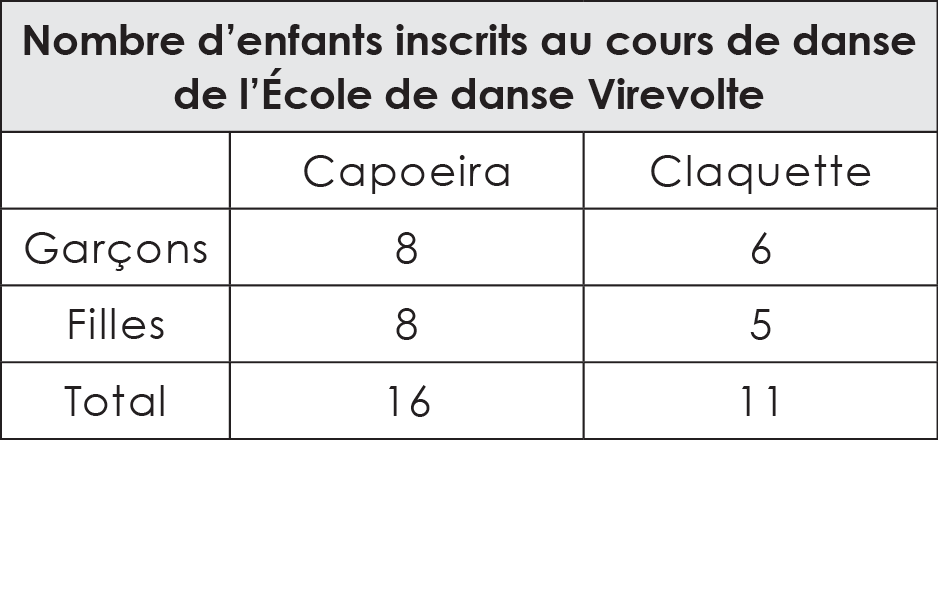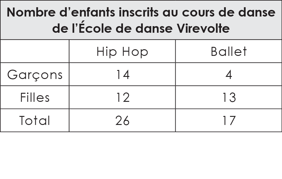 Un tableau complet contient un titre qui a un lien avec les informations présentées.