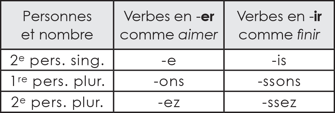 Terminaisons des verbes à l’impératif présent