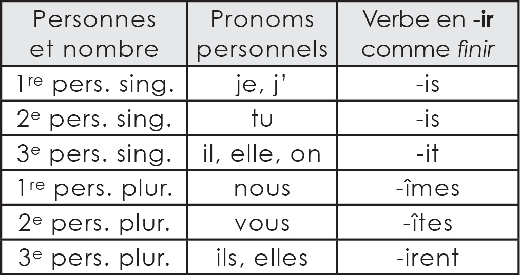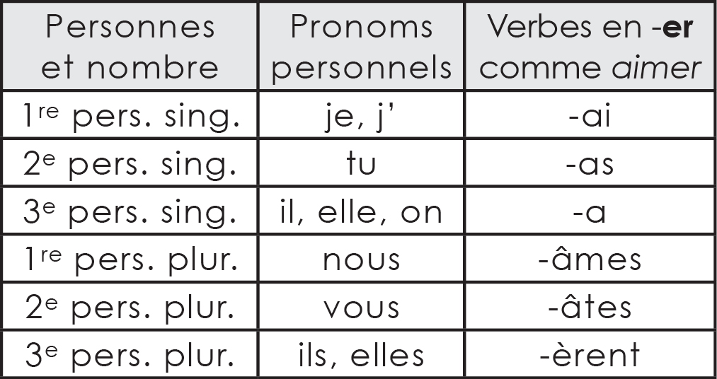 Seules la 3e personne du singulier et la 3e personne du pluriel sont étudiées et évaluées au deuxième cycle du primaire.