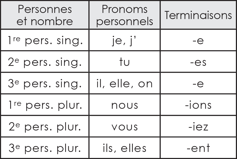 Terminaisons de tous les verbes au subjonctif présent sauf avoir et être