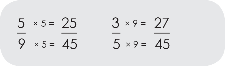 Pour deux fractions qui n’ont pas le même dénominateur, on doit écrire les deux fractions avec le même dénominateur. Pour cela, il faut trouver un multiple commun.