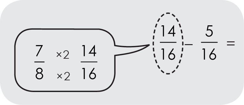 Dans cet exemple, on choisit le dénominateur commun 16.