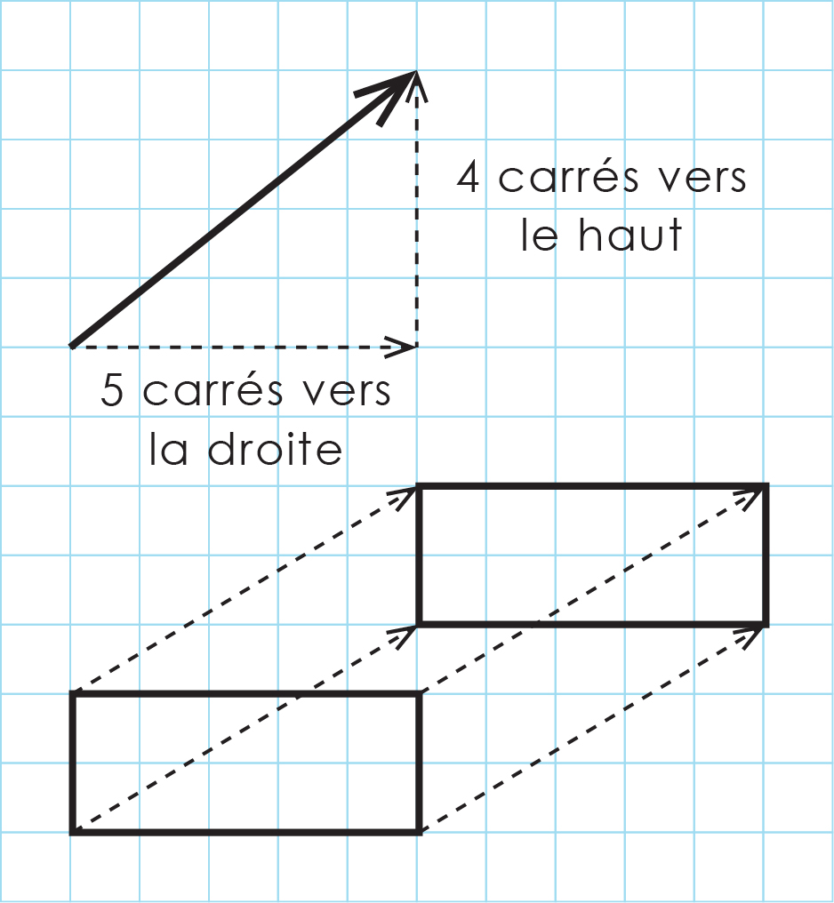 La flèche de translation peut être définie en deux étapes : le déplacement horizontal et le déplacement vertical. On doit effectuer un déplacement pour chacun des sommets de la figure.